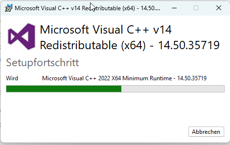 Nun noch sicherstellen, dass die aktuellste Microsoft Visual C++ Redistributable Version installiert ist.